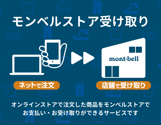 お支払いは受取店舗(モンベルストア)でのお支払いとなります。詳しくは各店舗ページの「支払い方法」をご参照ください。