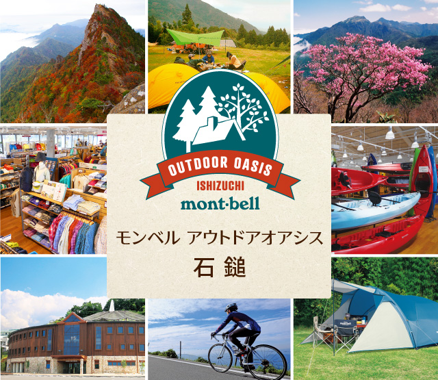 西日本最高峰を誇る名峰・石鎚山の麓、愛媛県西条市。この手つかずの自然と日本古来の修験者文化が残るアウトドアエリアにモンベルがプロデュースする「モンベル アウトドアオアシス石鎚(いしづち)」はあります。