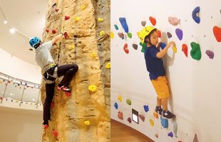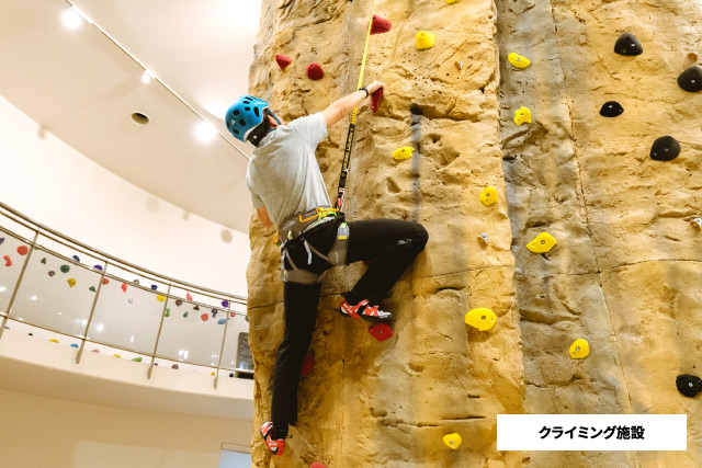 館内に高さ約6mの本格的なロープクライミングができるクライミングピナクルと、お子さまでも楽しめるボルダリングウォールがあります。
