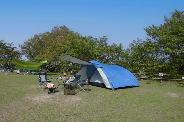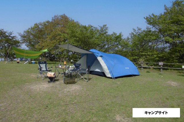 きれいな芝生が心地よい、全20区画のキャンプサイトです。電源付きオートサイトとフリーサイトがあります。トイレや炊事棟の設備も整っています。