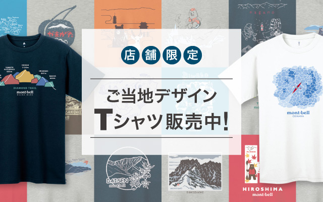 各地のモンベルストアやモンベルルームで、店舗限定デザインのイラストTシャツを販売しています。旅の思い出やお土産にぴったりのアイテムです。Tシャツ以外にも、ボトルやマグカップを販売している店舗もありますので、ぜひ旅先のモンベルストアで探してみてください。