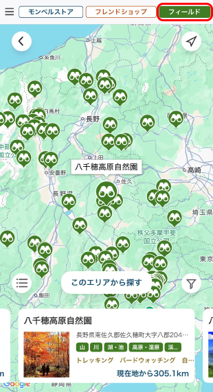 地図検索がリニューアル! 従来のモンベルストアやフレンドショップ検索に加え、全国のフレンドエリアおすすめのフィールドを地図検索できるようになりました。