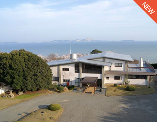 赤穂の伝統工芸品「雲火焼」と「赤穂緞通」、日本庭園の伝統技法「水琴窟」をメインに展示しております。赤穂御崎の高台にありますので、瀬戸内海の景色と水琴窟庭園を眺めながらゆっくりとティータイムをお過ごしいただけます。