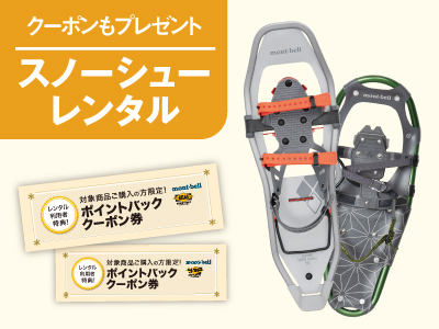 レンタルを利用すると、対象スノーシューを購入時にポイントバックを受けられるクーポンをプレゼントいたします。