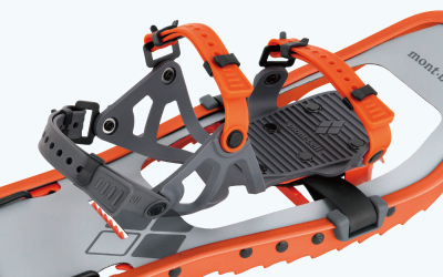 スノーシューを装着することで雪との接地面積を増やして浮力を高め、雪の上で歩きやすくするための道具です。滑りにくいように、裏面には爪(クランポン)がついています。