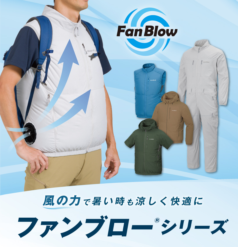 吸水拡散性に優れたウイックロンTシャツやジオラインアンダーウエアは汗を素早く吸水、生地表面に拡散させることで、蒸発を促す速乾素材。そこにファンブローシステム対応ウエアと組み合わせると、汗が蒸発する速度を加速させ、気化熱の発生をさらに促進。暑い時季も快適に行動できます。