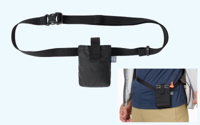 バッテリーを安定して腰に装着できるようにするためのウエストポーチです。50mmまでのベルトに装着することもできます。