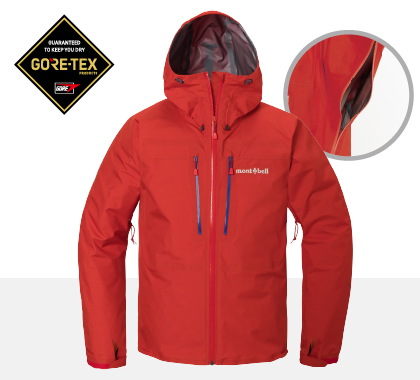 縫い糸の一本一本にまではっ水加工を施すなど、細部にいたるまで徹底的に防水・はっ水機能を追求。雨の多い日本で生まれたモンベルならではのこだわりです。