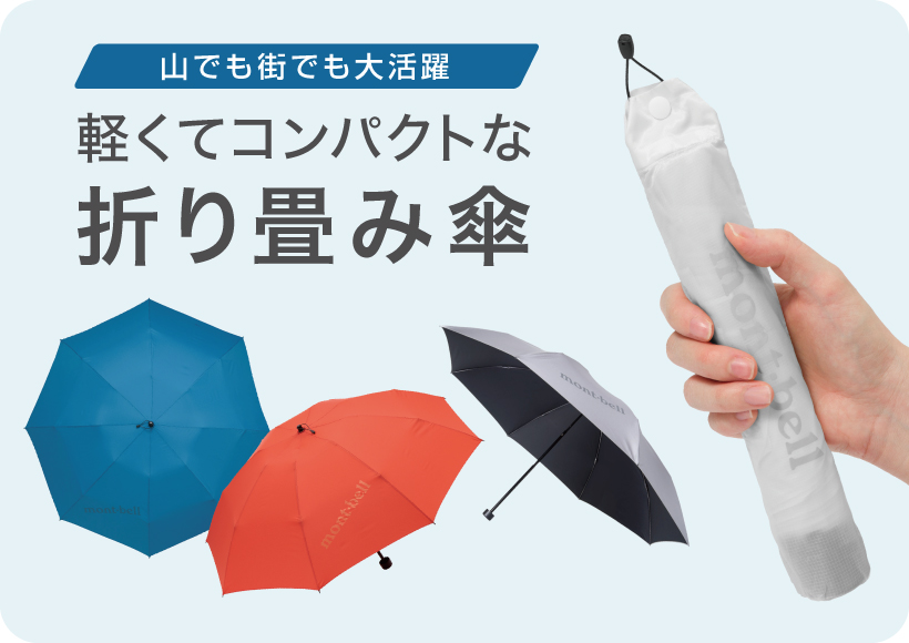 山歩きに使えるモンベルの折り畳み傘「トレッキングアンブレラ」が誕生したのは1987年。当時は山に傘を持っていくという発想自体がなかった時代。軽さと強度を併せ持つ登山用の傘は非常にユニークな存在でした。