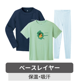 化繊のアンダーウエアやTシャツなど、汗冷えを防ぐため、汗を吸い肌をドライに保つレイヤー。肌に直接触れるので吸水速乾性や肌触りの良さを重視しよう。