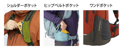 行動中に素早くアクセスできるショルダーベルトのポケット。