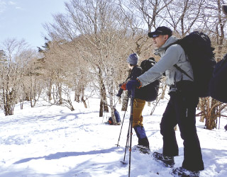 初めての雪山なら、低山で楽しむスノーハイクがおすすめ。しっかり防寒対策をすれば、トレッキングポールと軽アイゼンで楽しめます。