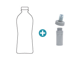フレックスウォーターパック(別売り)や市販のペットボトルに取り付けて使用できるので、ボトルの容量を問わず、ソロからグループ使用まで幅広く活用できます。