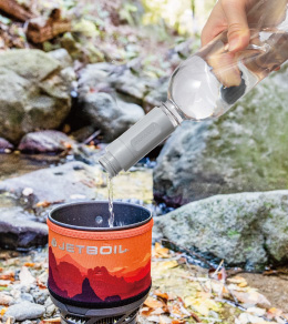 川や湖などの水に含まれる微生物や濁りなどを除去し、安全な飲料水を作るポータブル浄水器。フレックスウォーターパック(別売り)や市販のペットボトル(※2)に取り付けて使用します。たくさんの水を持ち運ぶ手間がかからず、軽量コンパクトな手のひらサイズで操作も簡単なので、アウトドアをはじめ海外旅行や災害時などさまざまなシーンで活躍します。