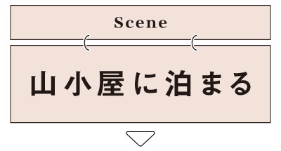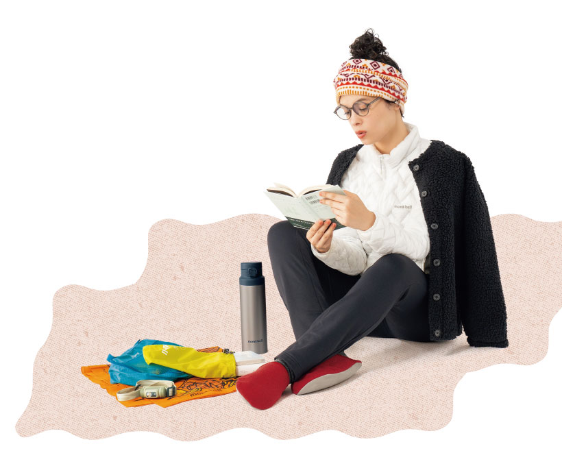 山の中で夜を過ごすなら、気温差への備えがポイント。日中は穏やかで歩きやすい気候でも、秋冬の山の朝晩はぐっと冷え込むので、たとえ室内だとしても防寒対策は必須。保温性の高いメリノウール素材や重ね着で寒さに備えよう。