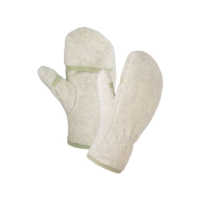 中厚手の保温性の高いフリース素材でできたミトン。指をカバーしている部分を外すと指先だけ出せるため、グローブをはめたまま細かい作業もしやすい。ストレッチ性と通気性にも優れていて快適な使用感