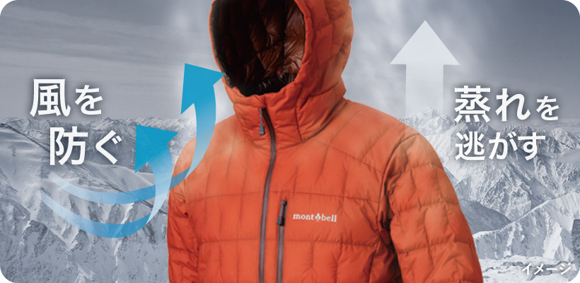最高品質1000フィルパワー・EXダウンと防風透湿性素材を組み合わせた、薄くて軽量で暖かなハイエンドモデル。万全の防風性と蒸れを逃す透湿性でアウトドアにおけるさまざまなシチュエーションで快適に過ごせます。