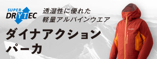 高い防水透湿性を備えたオリジナル素材「スーパー ドライテック」を使用したアルパインウエア。優れたストレッチ性と強度を併せ持つ生地を使用。しなやかで動きやすく、冬季縦走やアイスクライミングなどの激しい動きにも追従します。