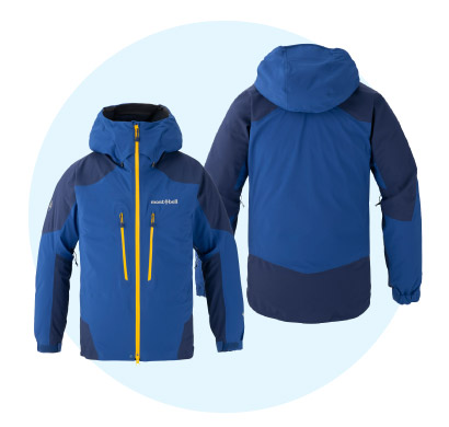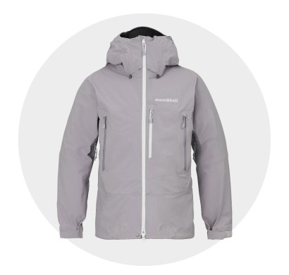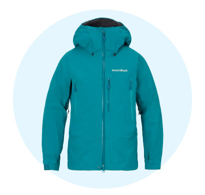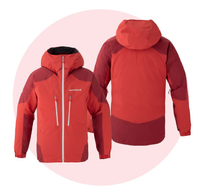 雪や風の侵入を防ぎ、汗の水蒸気は外に逃がす「防水透湿性」を備えた素材です。モンベルが扱う3レイヤー(3層構造)の防水透湿性素材の中で最も高い透湿性を実現。運動量の多いシーンでもウエアの中が蒸れにくく、快適性を保つことができます。