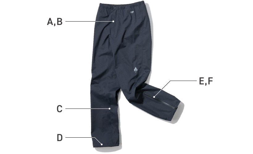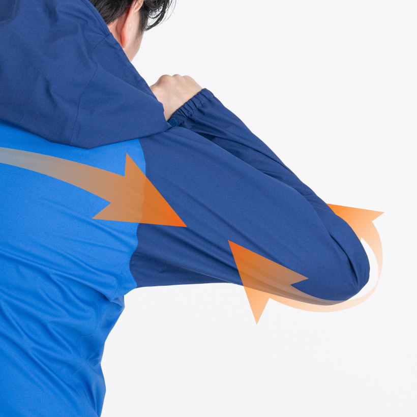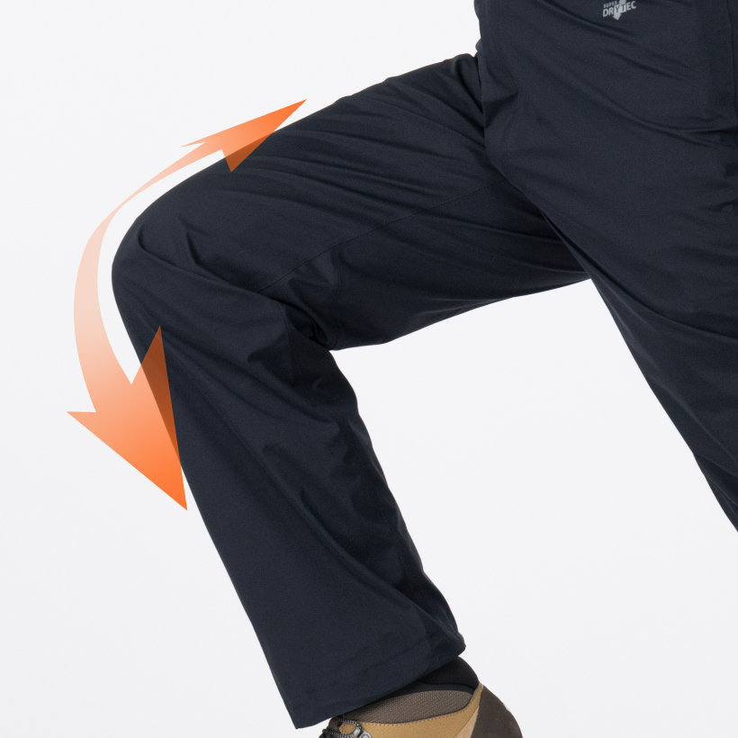 優れたストレッチ性を実現した独自の防水透湿性素材「スーパー ドライテック」を全面に使用。さらに膝など可動域が必要な部位には立体裁断を施したパターンを使用し、ダイナミックな動きにもストレスなく追従します。軽く、しなやかで、ゴワゴワ感の少ない着心地の良さも特長です。