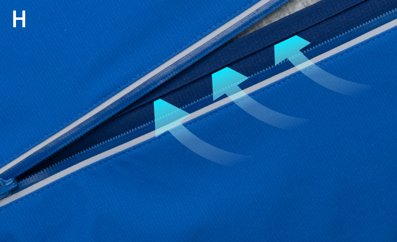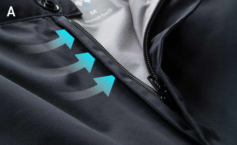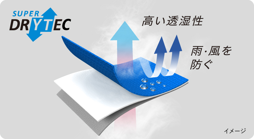 モンベルが扱う防水透湿性素材の中でも、最も優れた透湿性と高い耐水圧を実現した「スーパー ドライテック」を使用。外からの風雨を防ぎながら行動中の汗の蒸れを効率よく外に逃がし、運動量が多い場面でもウエア内を快適に保ちます。