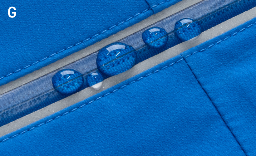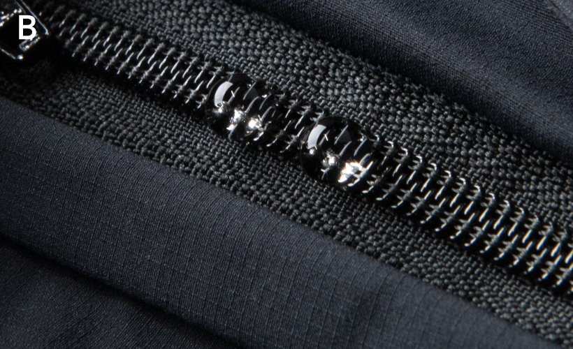 表地には非常に軽量ながら、優れた摩耗耐久性を備える独自素材「バリスティック エアライト」を使用。一般的には難しいとされているストレッチ性と摩耗耐久性の両立を、生地の密度や防水透湿メンブレンとの接着方法などを吟味し、高いレベルで達成しています。
