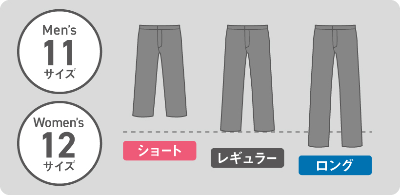 スーパードライテックストレッチレインパンツは、同じウエストサイズで股下がレギュラーモデルより6cm短いショートモデルと、6cm長いロングモデルも展開しています。