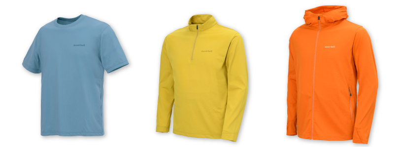 半袖、長袖、ジップシャツ、パーカなど用途に応じて様々な形状のウエアをラインアップしています。