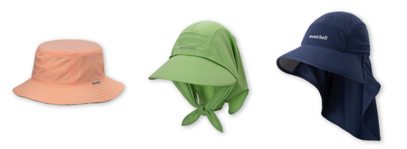 頭部の紫外線対策に必要不可欠なキャップとハット。首筋の保護にシェードやネックゲーターも効果的です。