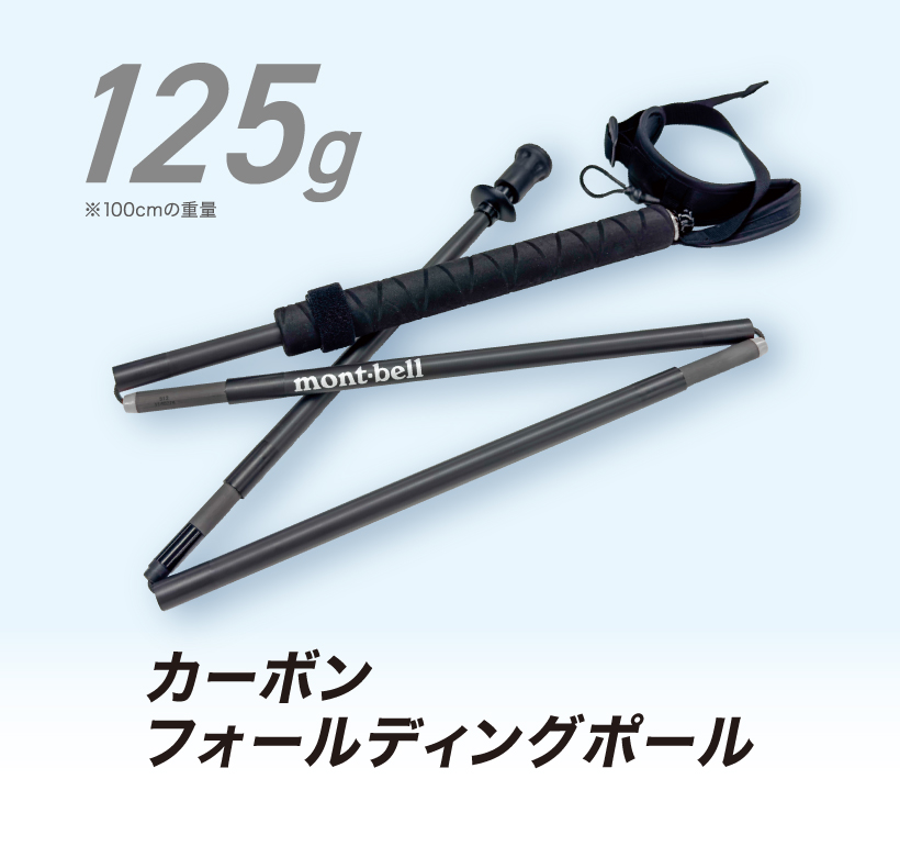 軽さと剛性に優れるカーボン繊維強化樹脂をポール全体に使用しているため、モンベルのトレッキングポールの中で最も軽量です。非常に軽いためスイングしやすく、操作性に優れます。腕への負担が少なく長時間の使用による疲労軽減が期待できます。