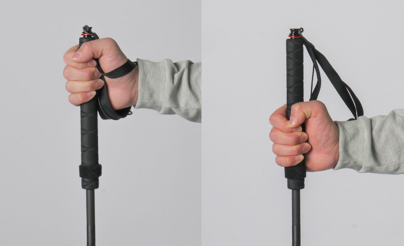 急な登りや下り、斜面のトラバース。地形によってトレッキングポールの最適な長さは変わります。カーボンフォールディングポールはグリップ部が長いため、握り位置を変えることでさまざまな地形の状況に対応します。衝撃吸収に優れるEVAフォームグリップで快適に使用できます。
