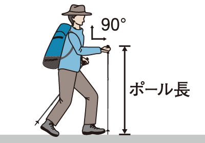 肘が約90度になる角度でポールを持った時の地面からの高さが目安になります。