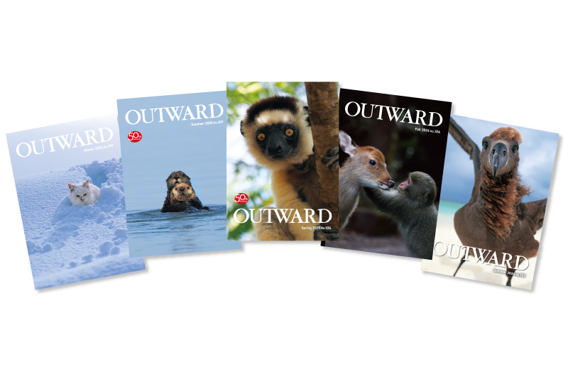 撮影した動物写真が『OUTWARD』第13号から第109号まで、25年間にわたり表紙を飾る。『OUTWARD』第110号からはフォトエッセイの新連載が始まる。
